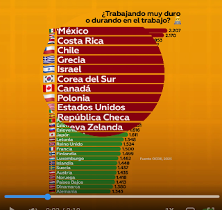 Al respecto, según el informe anual de la Organización para la Cooperación y el Desarrollo Económico (OCDE), México, Costa Rica y Chile son los países que más horas trabajaron en 2023.